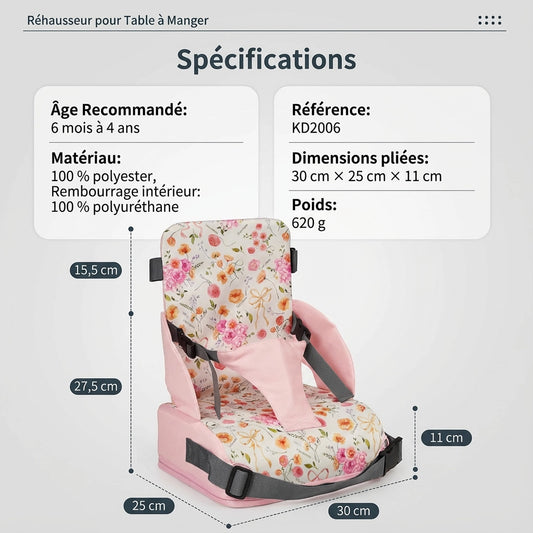Rehausseur chaise enfant amovible rose fleur