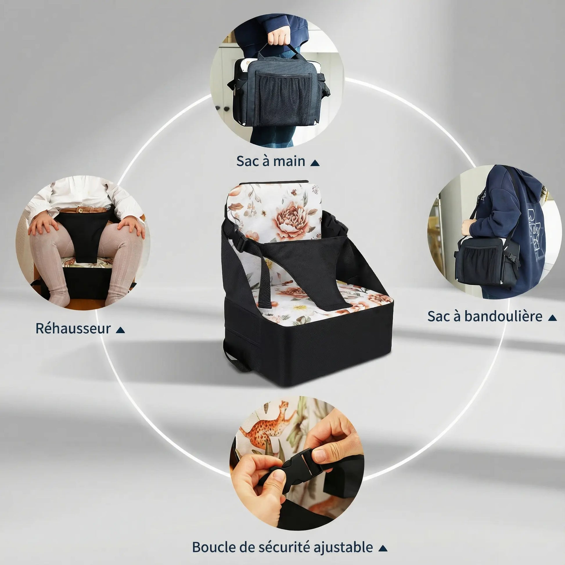 La mousse haute densité garantit un maintien stable, permettant à l'enfant de participer pleinement à la vie de famille à la hauteur idéale. La boucle de sécurité robuste sécurise l'installation en un clic, transformant n'importe quelle chaise de restaurant en un cocon protecteur et sain. Le poids plume de 550 grammes permet de le glisser dans un sac sans fatigue, répondant parfaitement au besoin de légèreté du parent nomade. Les sangles réglables s'adaptent à toutes les configurations de mobilier, éliminant le stress lié à l'imprévu lors des sorties. Enfin, le design aux motifs floraux délicats apporte une touche de douceur, faisant oublier le côté purement technique du matériel pour ne laisser place qu'au plaisir du moment partagé.
